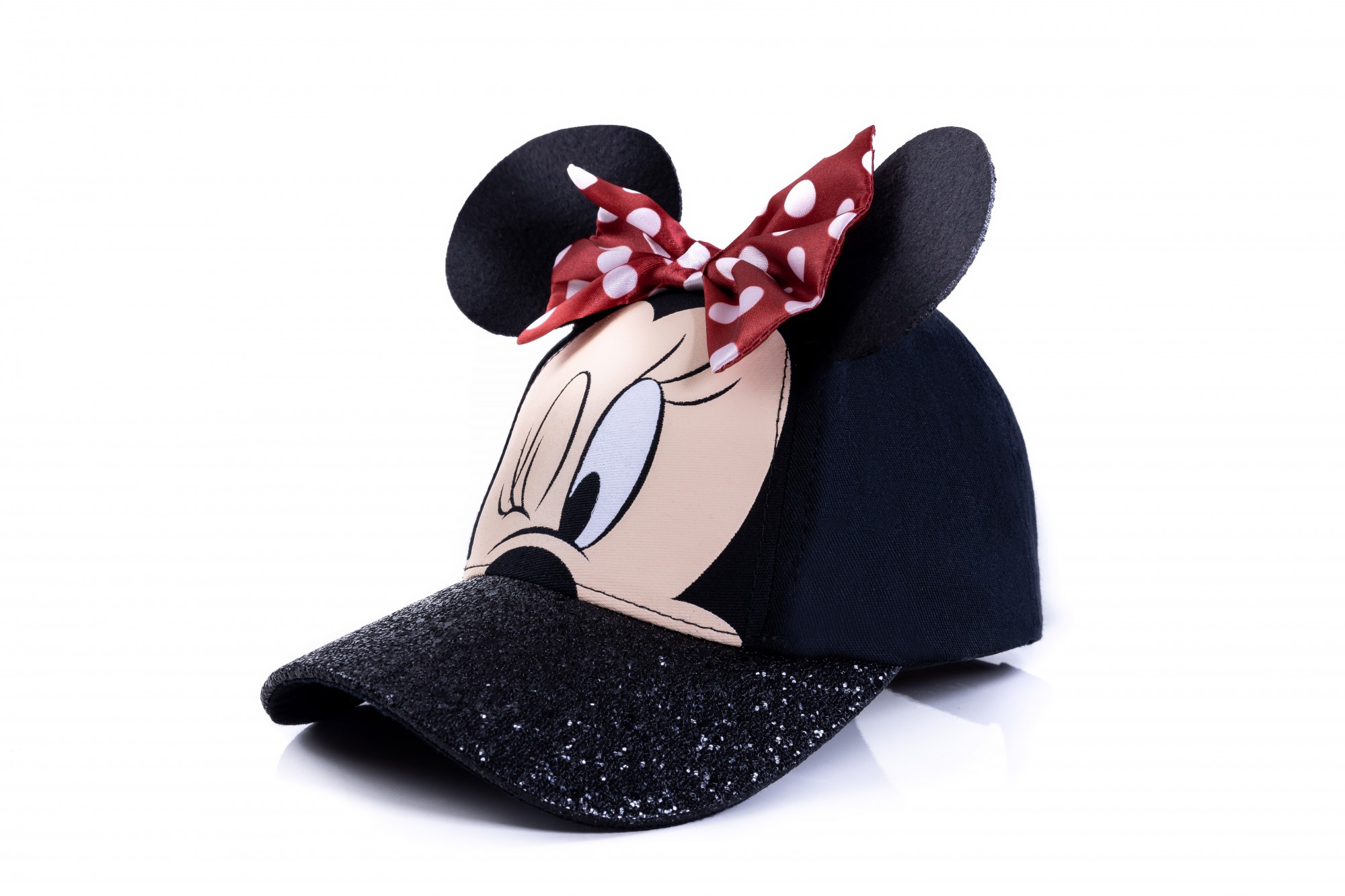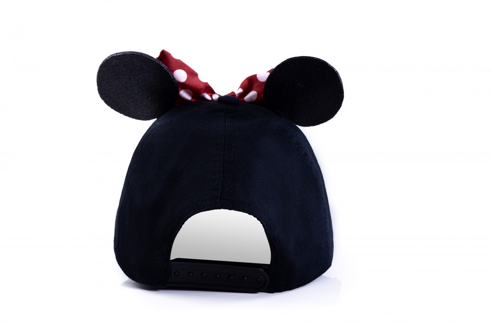 O boné Minnie Mouse é um modelo com qualidade de alto acabamento, o que mais valoriza o exemplar é o desenho de serigrafia e seus detalhes como: orelha e laço, dando ênfase na proposta do boné.